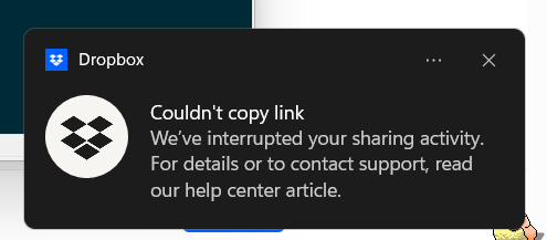 Could not copy link we've interrupted your sharing activity