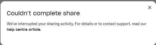 "Couldn’t complete share. We’ve interrupted your sharing activity"