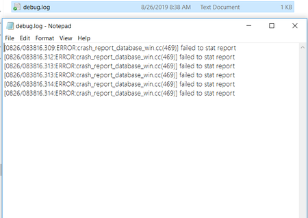 Problem: When I open PDF file on Google Chrome, automatically created error "debug.log".