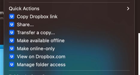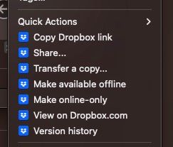 I managed to upgrade to the File Provider version of Dropbox, however the right click is still the same, with an additional "Version history" selection.