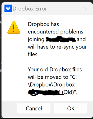 one of my users is experiencing this error "dropbox has encountered problems joining (team folder) and will have to re-sync your files". it then asks if they want to move it to (Team...