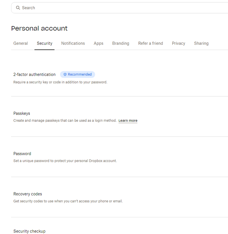 Dropbox and windows version info. I don't see searching permissions under the settings security area.....