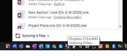 Dropbox icon constantly reports "Indexing 4 files..."