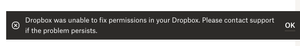 Dropbox is stuck indexing on my Mac device and fixing permissions throws an error.