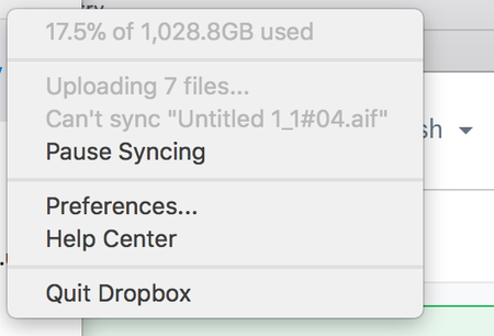 For the past few days, dropbox has not synced a few specific files on my mac. I get this when I check the status in menu bar I've cleared cache, fixed permissions, and run check disk...
