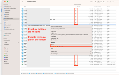 We have issues with our company Dropbox, where checkmarks/cloud sync icons sometimes disappear and reappear.