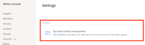 On other teams i manage, there is no setting fot "Top-level content management" and therefor i cannot share a team folder externally.