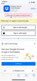 Out of curiosity, what happens when you click the aA initials that are shown on your screenshot, and then request the desktop view of the site? You should be able to proceed, without a Dropbox account.