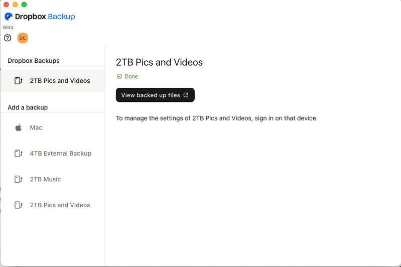 When saying you’d like to back up your external hard drive on a second device, do you mean that you connected the same hard drive you had backed up on the previous computer and you wish to use that same Dropbox backup, but from a different device?