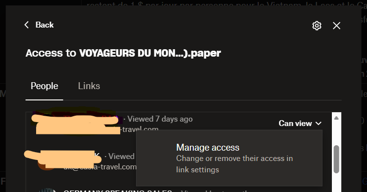 I've a personal Dropbox account. I shared the link to someone. He opened it in his work account, instead of his personal account. Now the paper shows his work account as 'opened'. How to remove that? He doesn't want other people who is viewing the Paper to notice his work email address.