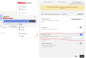 Hi Hannah thanks for your response. To clarify terminology, I'm not Sharing the folder, I'm copying the link. My past experience with "sharing" is that the recipient has to download the folder contents to their Dropbox.