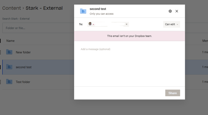How can I share a folder with an individual without them being added as a member to our organizations Dropbox account? I want to be able to share a folder without them being added to our team as we would then have to pay for eavh folder shared.