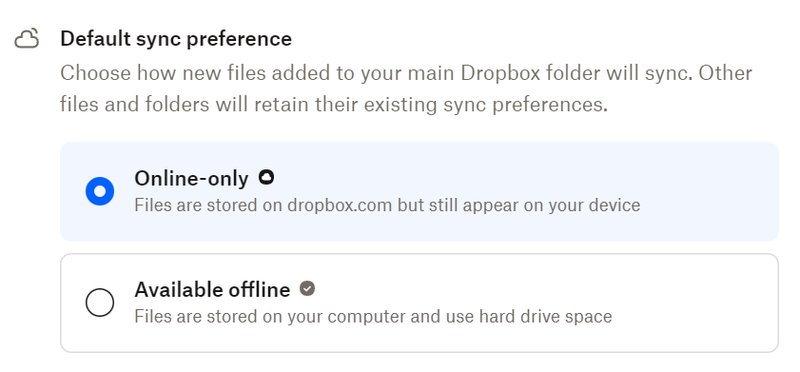 Oh my God, thank you. 🙏 I didn't understand this distinction but it makes more sense now. There were still hiccups with Dropbox repeatedly trying to download files without my permission, which hangs up the sync (this is a longtime ongoing issue, I think maybe a conflict with my antivirus though I'm unsure), but I kept aggressively setting them to online only again and it's finally stopped syncing for the first time in 2 weeks.