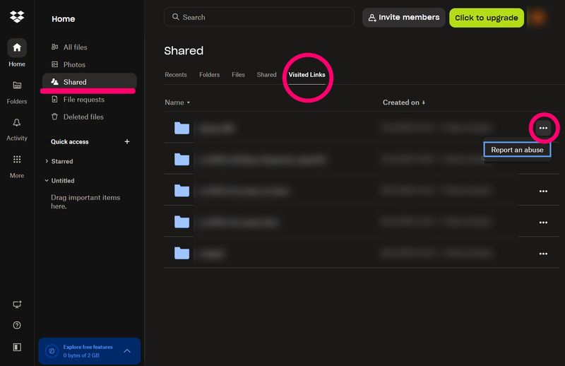 I’ve noticed that whenever I open a Dropbox link for example, a shared link or a private file , it’s automatically added to the Visited Links list of the logged-in account (without even alerting or notifyin the user). The issue is that there doesn’t seem to be any option to delete or clear these links.This becomes a real privacy problem in certain scenarios. For instance, when using a business account as part of a team, if I open a personal or confidential Dropbox link (even by mistake), that link remains permanently visible in the Visited Links section, with no way to remove it.