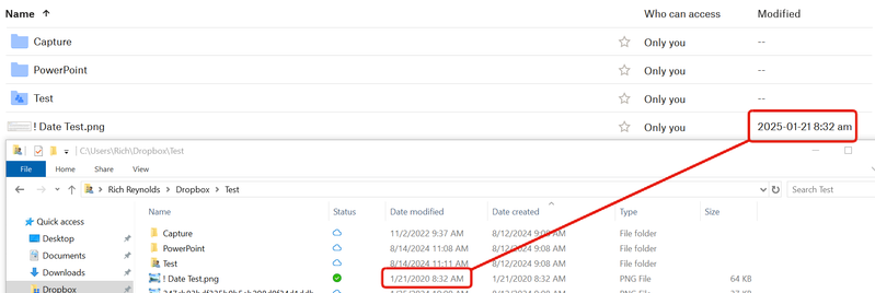 However, bear in mind that the modification date itself is what Dropbox would sync and show on the site, so all your files would have today's date. Likewise, if you were to edit the metadata on a single file afterwards, the modification date would change again, and that would then sync to the site.