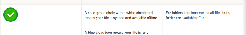 Regarding the solid green circle with a white checkmark, it means that your files is fully synced and available offline, just like before.