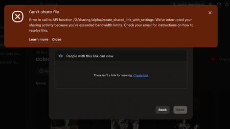 I get an error that I've exceeded my Dropbox account's bandwidth limits.