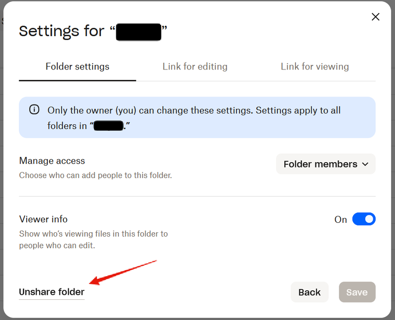 On number #4 I get this dialogue box and I don't even have the option to unshare the folder. I am on Firefox if that matters.