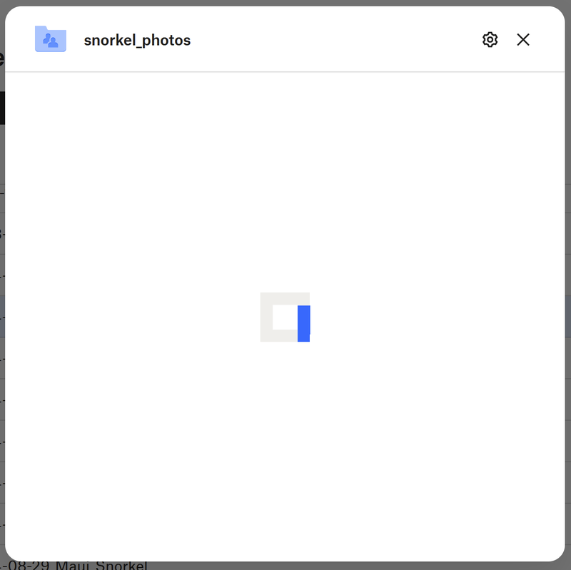 However I tested other folders and they all loaded, showing emails of the invited shares. The folder that would not load the shares is the only one demonstrating this characteristic.In all of the other folders I tested, the gear icon brings up the dialogue box, from my earlier post, that does NOT show the unshare link.