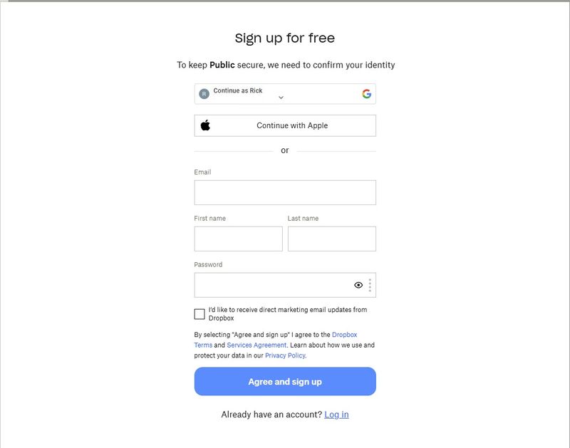 I send to user by email .... instead of being able to click and access shared files - Dropbox blocks access unless they create an account, people I share with often do not want to create an account - you advised users could close the window without creating account and access the files - there is option to do this here is a pic of what users see :