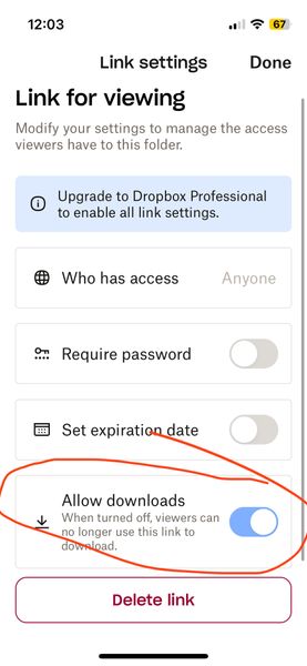 Is viewing with download disabled for free accounts? (I am on a free account) When I go to share (and subsequently generate a link) I now see a mandatory choice of either 1) editable or 2) viewable ...
