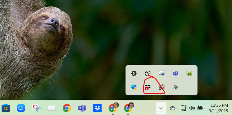 It's a bit odd that you don't have this little Dropbox icon in your taskbar.