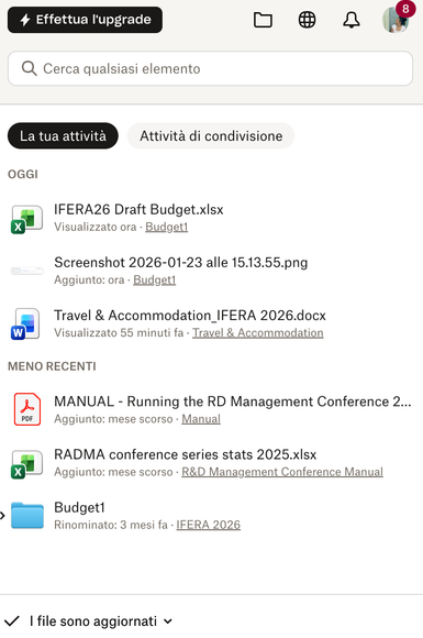 As you can see, there is available space and synchronization is working.However, if my collaborator tries to upload documents using their shared folder, from the IFERAOffice account (not from desktop nor online) I am not able to see what has been uploaded to the shared folder.