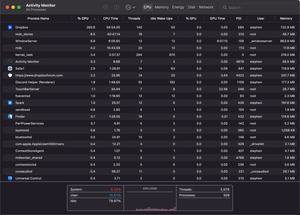 The Dropbox sync could be completely finished, and yet the CPU usage is still off the charts. My MacBook fans are constantly spinning, and even if I close the lid on my MacBook Pro, it will go to sleep, but then I will hear the fans spin up again and continue to run for hours. I have to literally shut down my MacBook Pro to stop the fans & excessive CPU usage from Dropbox.