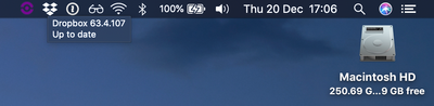 Dropbox says it is up to date (see above) and shows the current version (I downloaded and reinstalled the current stable release just to be sure, but still no icons....)