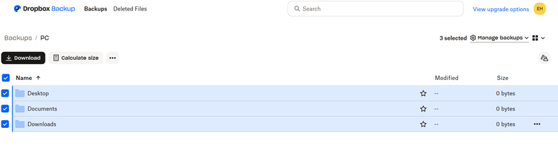 Hi I was able to download the Dropbox App for my surface pro and setup the backup. After successfully backing up, the dropbox online says my "Desktop" "Documents" & "Downloads" backed up but there are 0 bytes in each folder.