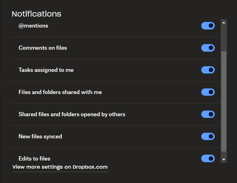 This means I'm having to manually check all our folders for updated or new files which isn't ideal at all. Any ideas? I've tried quitting Dropbox and restarting already and can confirm all notification settings are set to 'on'.