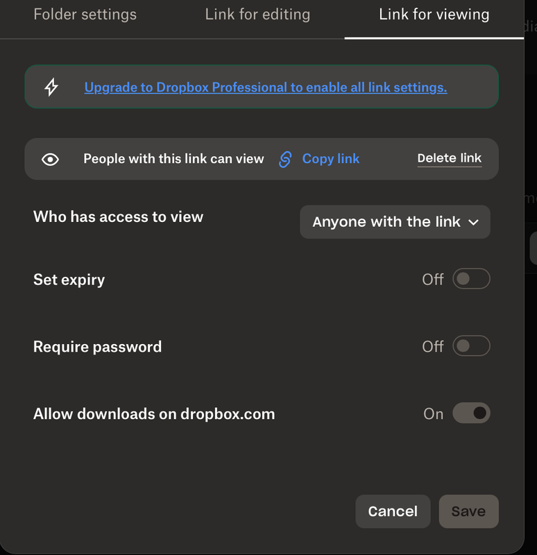 Also, when saying that you tried right-clicking on your Dropbox files and selecting "Copy link", are you referring to the desktop app on your Mac device?