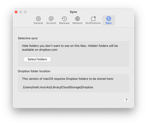 In general, you can find the selective sync preferences when visiting the Sync tab of your app’s preferences.