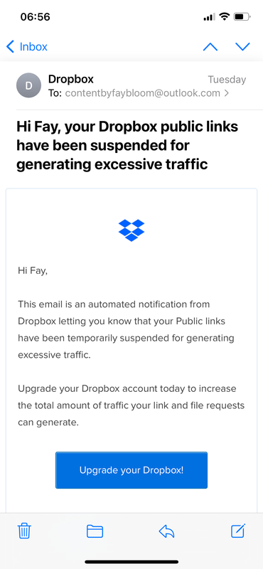 I have received an email (don’t know how to add screenshots on here!?) to say that public links have been temporarily suspended. This was a few days and I still can’t send anything. How do I get this suspension lifted and how do I stop it from happening again?