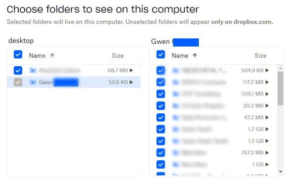 I checked selective sync, and my parent folder is greyed out but all subfolders and their subfolders are checked in blue. I am unable to choose the parent folder, it will not let me make any changes. Below is a screenshot of what I see:. I have years of experience with dropbox and have never experienced this. I am director of my department and desperately need to resolve this asap. Thank you for your help!