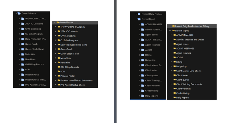 Hi Nancy. Yes, it's the folder that was created for me when I joined the company, then I was granted access to the various folders and able to create my own folders under the personal name folder. The primary parent folder is the company folder under the business account..