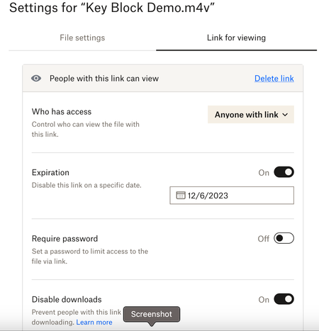 Greetings. I have a shared file set to be viewable by anyone with the link, and I've sent the link to those I want to view the file (see screenshot). However, when they access the link, Dropbox sta...