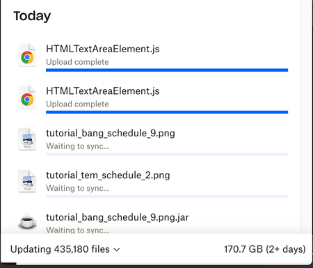 Currently, my MacBook Pro with the M1 chip, purchased in October 2022, is syncing my files to Dropbox at less than 1mb/sec, but I've seen that I can send up to 100mb/sec to Dropbox. My initial sy...