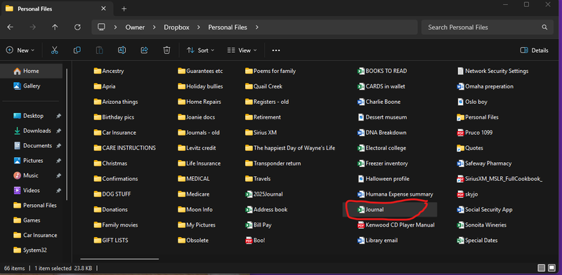This is the Personal Files folder that II have on my desktop. You see "Journal" highlighted