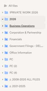 This is a screenshot of the folders that are in Dropbox for the person who is sharing information with me. I have access to all of these folders except the 1st one (Private Work), Government Filings and the 3 PC ones.