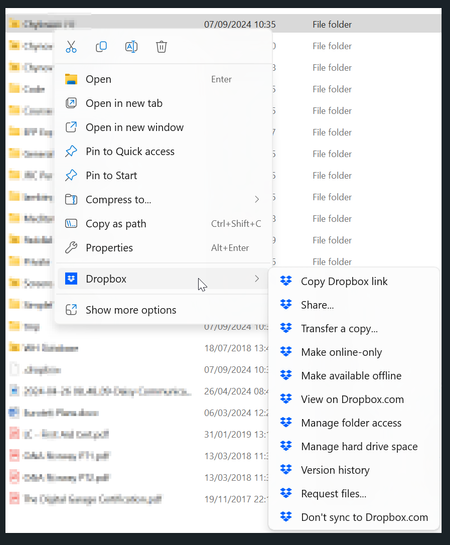 1 year agoHi again, Andrew. Can you send me one more screenshot of the options you see now, when right-clicking on your Dropbox files?