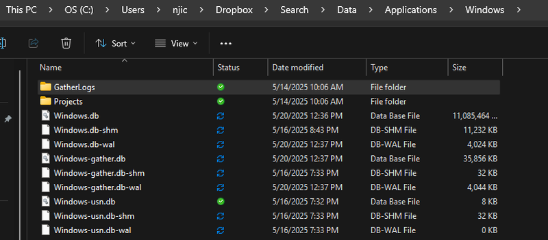 HI Stephen J.9, could you confirm the exact folder in which the search index is stored on your device, within the Dropbox folder?