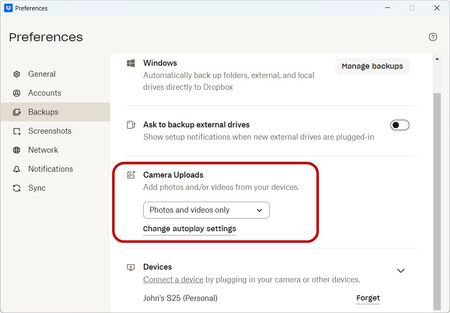 Here's how the Dropbox is configured on the S25. I've basically turned on everything.