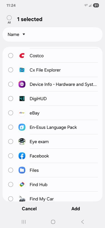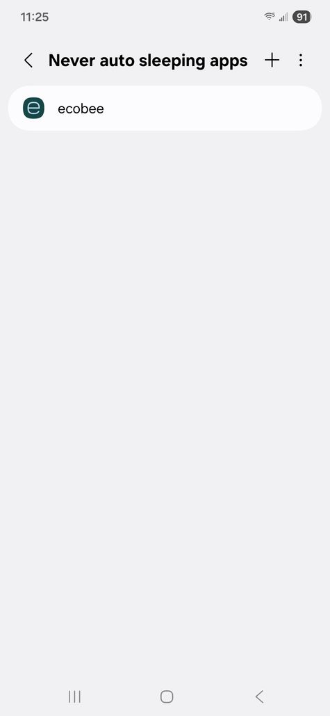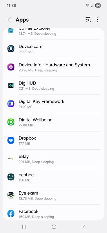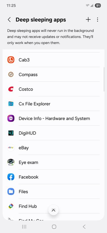 The Dropbox app doesn't show up in the sleep configuration on the Samsung Galaxy S25. Yes, it's installed and working on the phone.