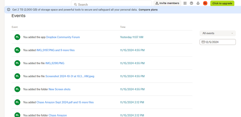 Thank you I checked my events and there is nothing from 12/4 when this happened. But the emails look valid from dropbox and information is "relevant" but I did not create a file or create a transfer