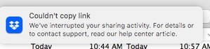 "We've interrupted your sharing activity" error when trying to share a link