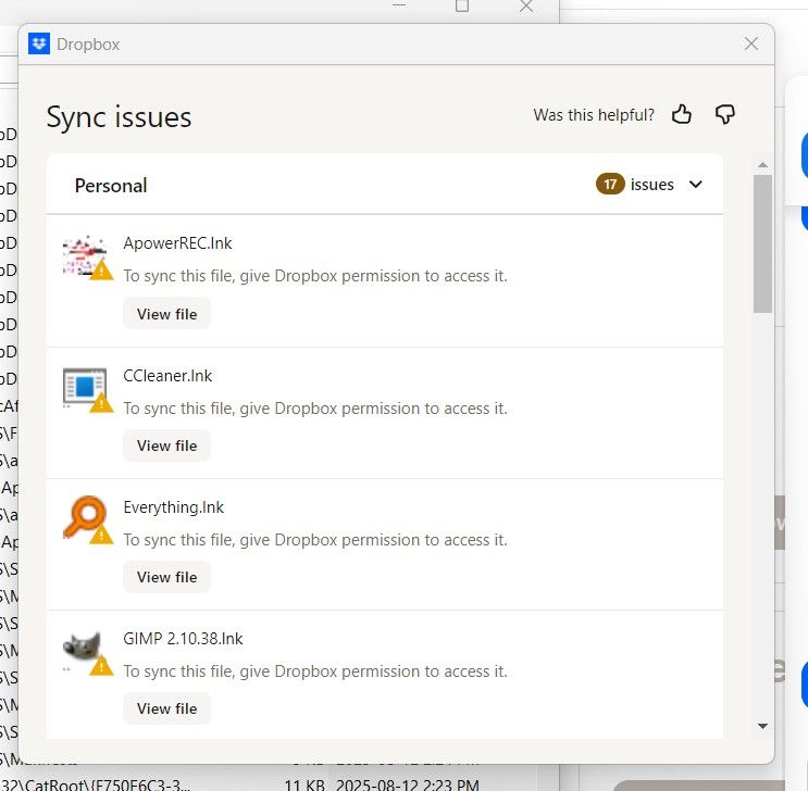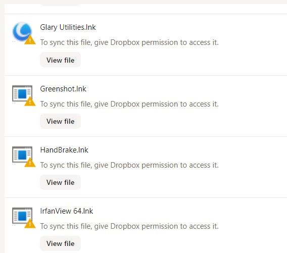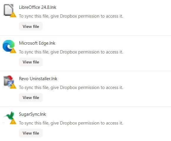 Why do I need to give Dropbox permission to sync .lnk files on Windows?