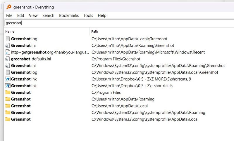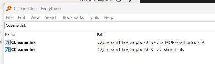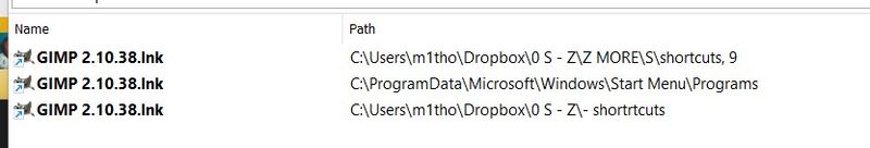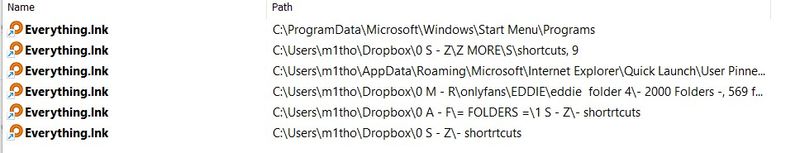 I used the search engine, Everything, and I searched the shortcuts from my 1st attachment, in my original post.
