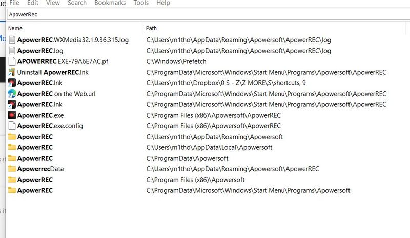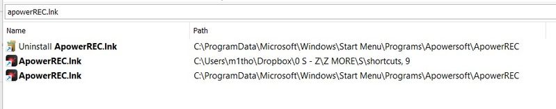 And then, here are the programs. I entered the name of the program (app). For example, in the search engine, I wrote 'ApowerRec' and below are some results . . .