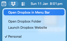 Try using CTRL or CMD when clicking on the Dropbox icon instead to open the display window.